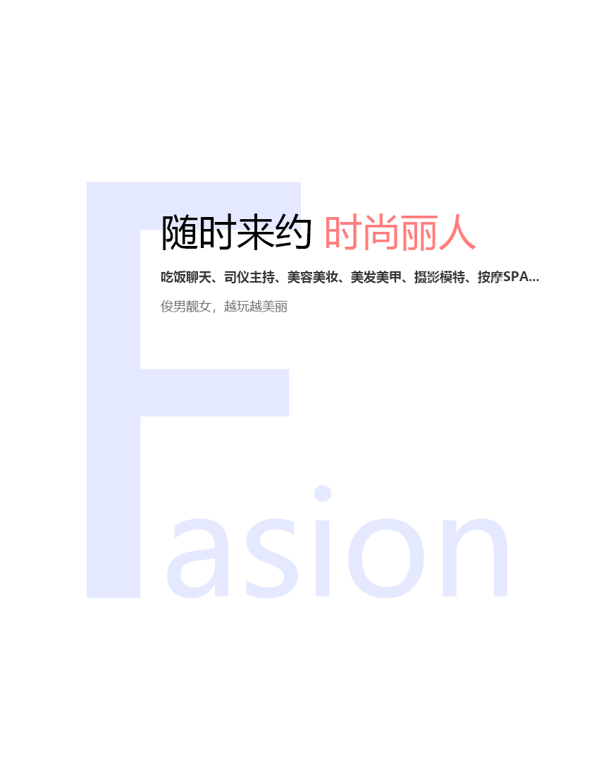 吃饭聊天、司仪主持、美容美妆、美发美甲、摄影模特、按摩SPA